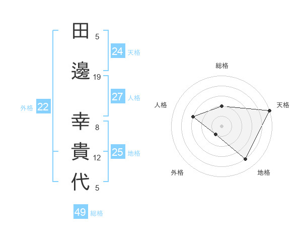 田邊 幸貴代さんを姓名の画数から五運を鑑定