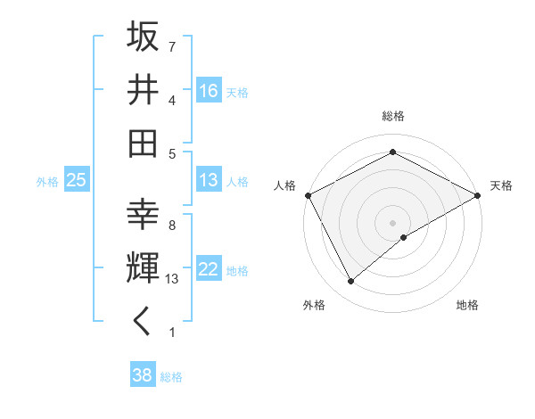 坂井田 幸輝くさんを姓名の画数から五運を鑑定