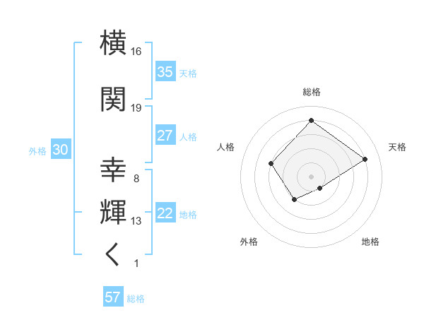 横関 幸輝くさんを姓名の画数から五運を鑑定