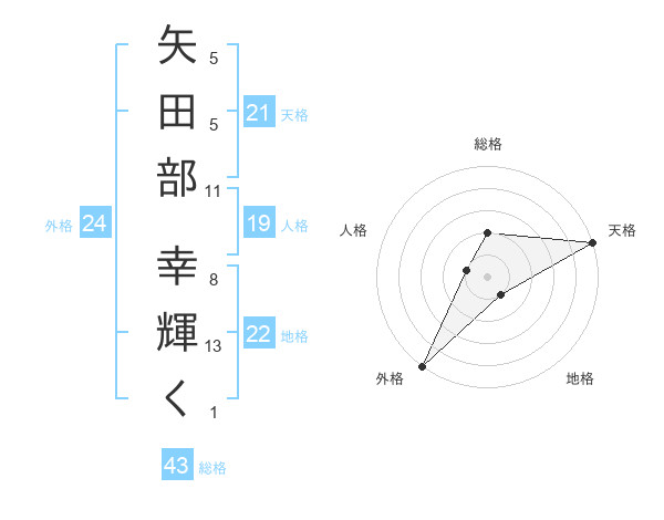 矢田部 幸輝くさんの天格は21画の5点!