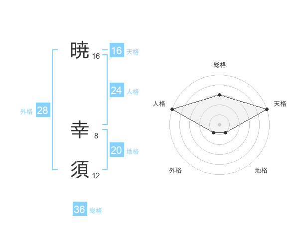 暁 幸須さんの総格は36画の3点!