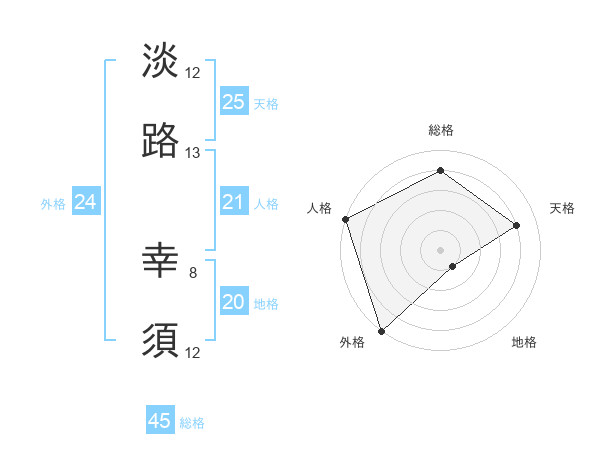 淡路 幸須さんの天格は25画の4点!