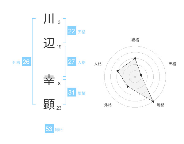 川辺 幸顕さんを姓名の画数から五運を鑑定