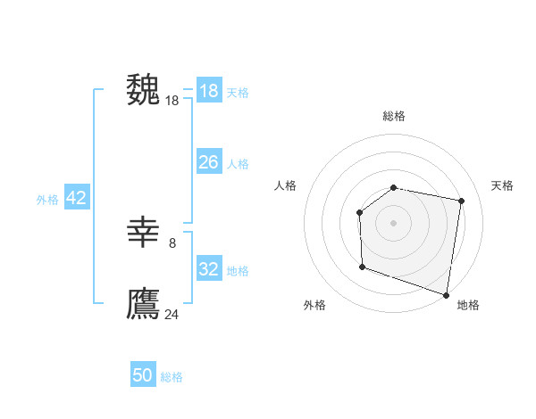 魏 幸鷹さんの総格は50画の2点!