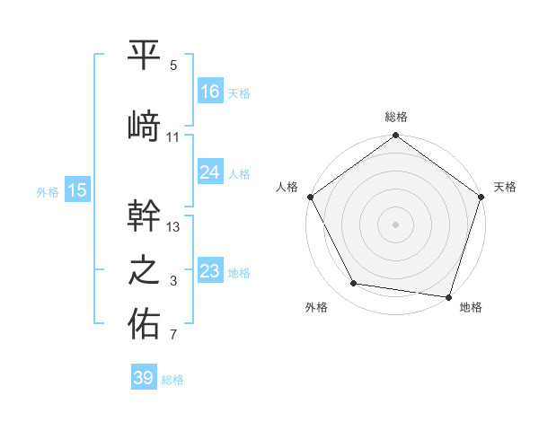 平﨑 幹之佑さんの総格は39画の5点