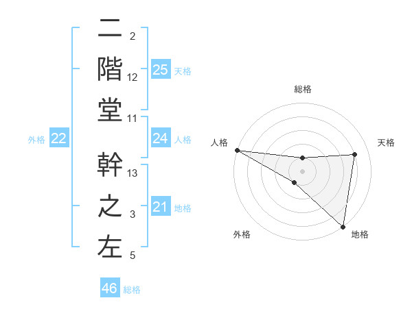 二階堂 幹之左さんの地格は21画の5点!