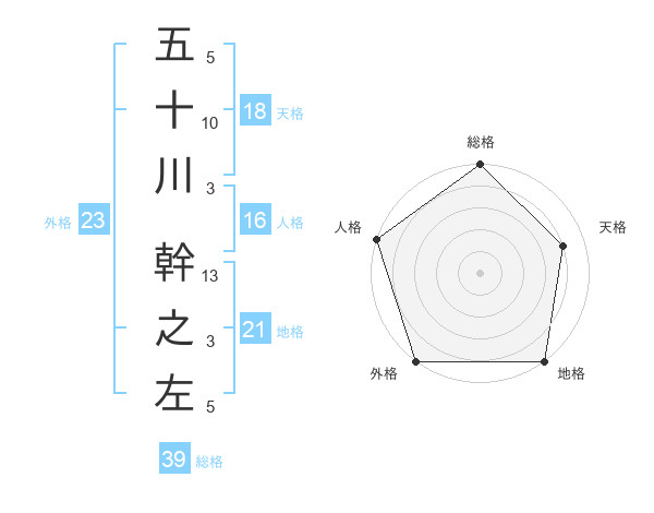 五十川 幹之左さんを姓名の画数から五運を鑑定