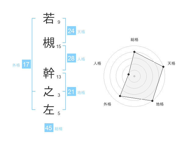 若槻 幹之左さんの総格は45画の4点!