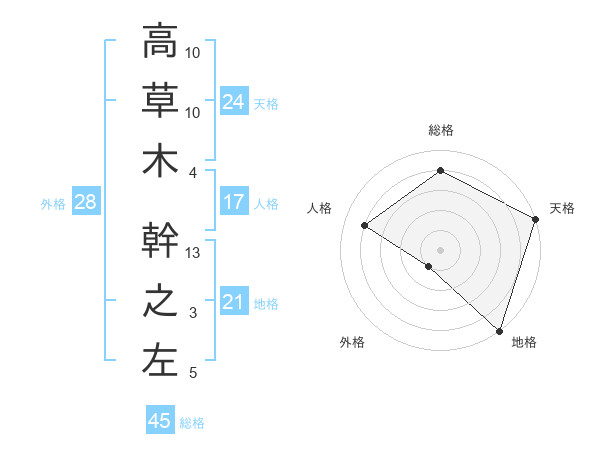高草木 幹之左さんを姓名の画数から五運を鑑定