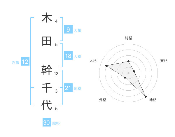 木田 幹千代さんを姓名の画数から五運を鑑定