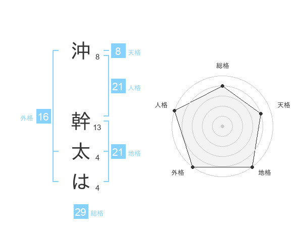 沖 幹太はさんの地格は21画の5点!