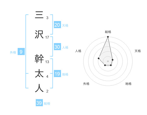 三沢 幹太人さんを姓名の画数から五運を鑑定