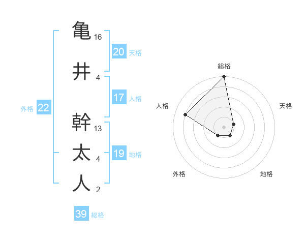 亀井 幹太人さんを姓名の画数から五運を鑑定