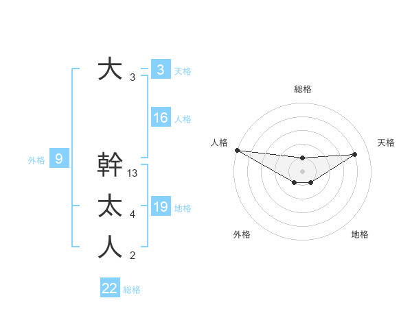 大 幹太人さんの総格は22画の1点!