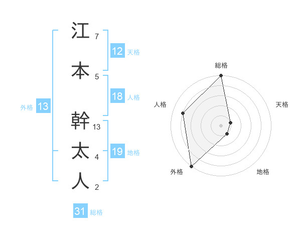 江本 幹太人さんを姓名の画数から五運を鑑定