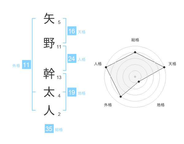 矢野 幹太人さんを姓名の画数から五運を鑑定