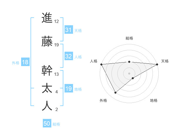 進藤 幹太人さんの総格は50画の2点!