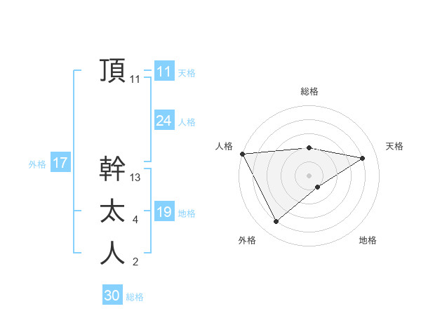 頂 幹太人さんを姓名の画数から五運を鑑定