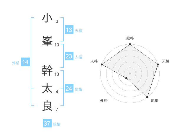 小峯 幹太良さんの総格は37画の5点!