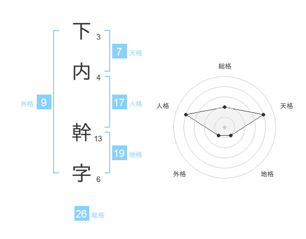 下内 幹字さんの総格は26画の2点!