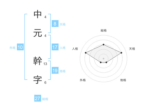 中元 幹字さんの天格は8画の4点!
