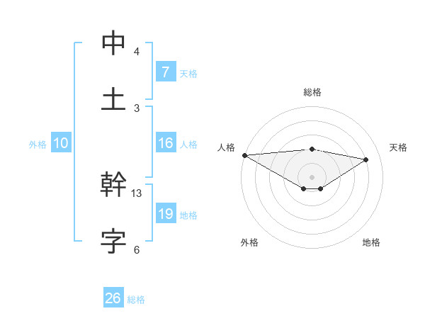 中土 幹字さんを姓名の画数から五運を鑑定