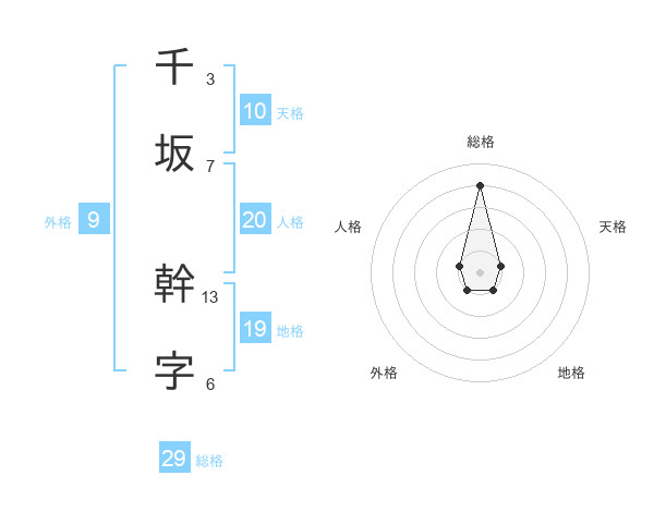 千坂 幹字さんを姓名の画数から五運を鑑定