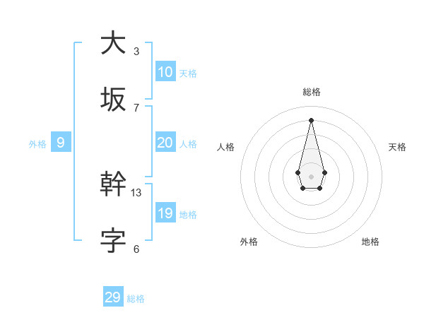 大坂 幹字さんの総格は29画の4点!