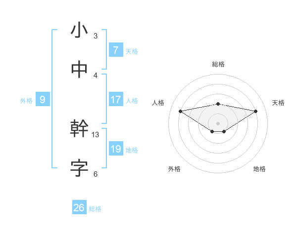 小中 幹字さんの総格は26画の2点!