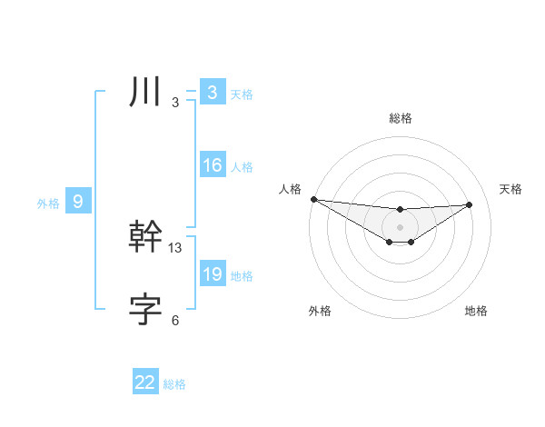 川 幹字さんの総格は22画の1点!