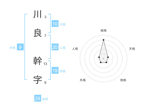 川良 幹字さんの総格は29画の4点!