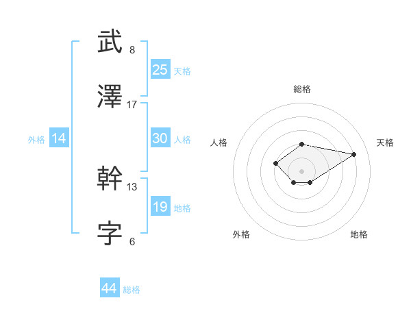 武澤 幹字さんの総格は44画の2点!