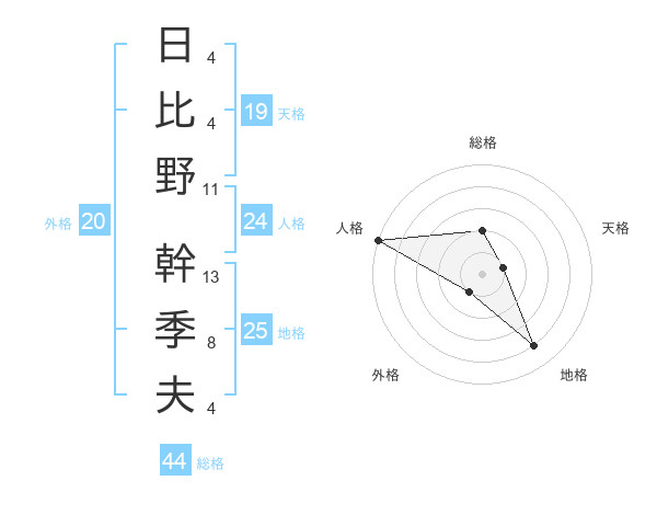 日比野 幹季夫さんを姓名の画数から五運を鑑定