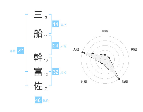 三船 幹富佐さんを姓名の画数から五運を鑑定