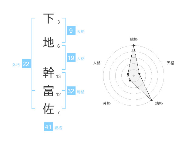 下地 幹富佐さんを姓名の画数から五運を鑑定