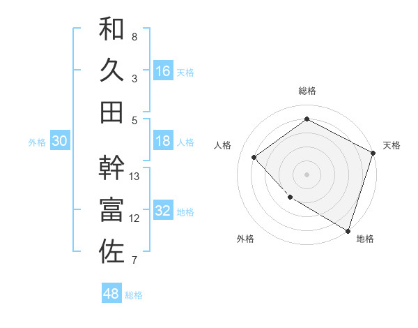 和久田 幹富佐さんの総格は48画の4点!