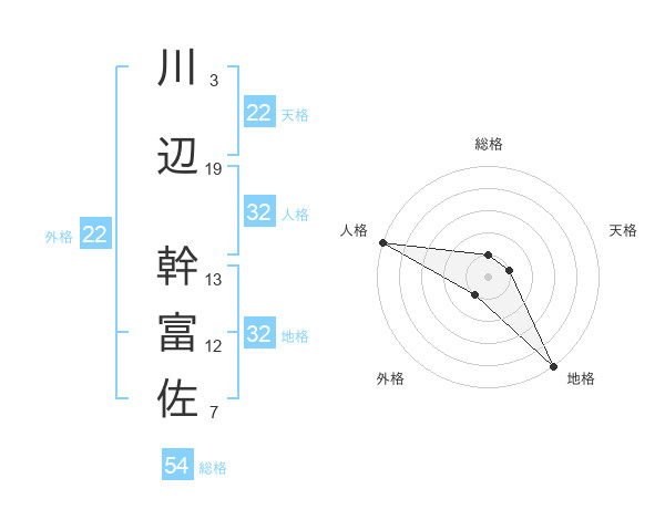 川辺 幹富佐さんを姓名の画数から五運を鑑定