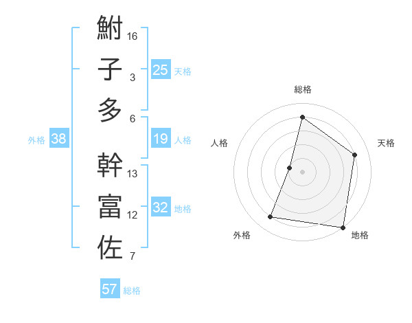 鮒子多 幹富佐さんを姓名の画数から五運を鑑定