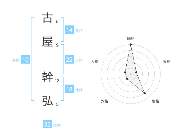 古屋 幹弘さんを姓名の画数から五運を鑑定