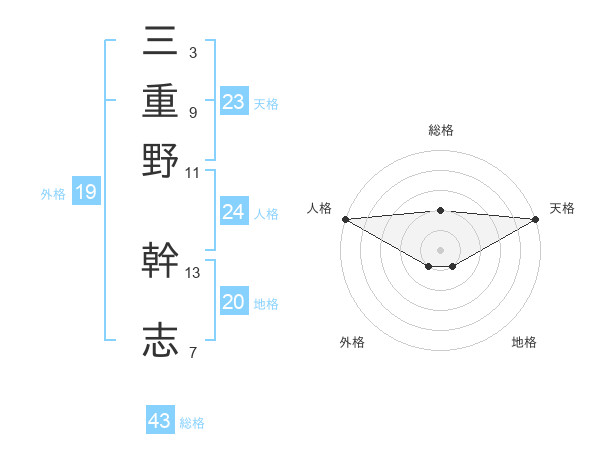 三重野 幹志さんの天格は23画の5点!