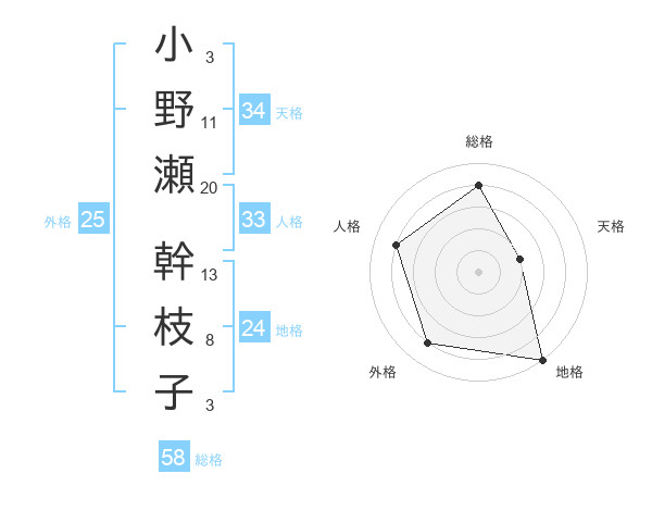 小野瀬 幹枝子さんを姓名の画数から五運を鑑定
