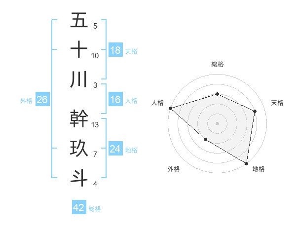 五十川 幹玖斗さんの総格は42画の3点!