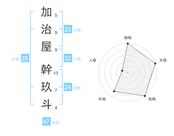 加治屋 幹玖斗さんの総格は47画の5点