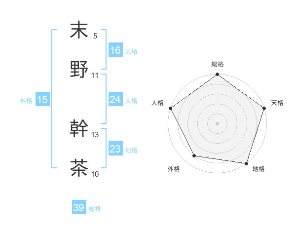 末野 幹茶さんの総格は39画の5点!