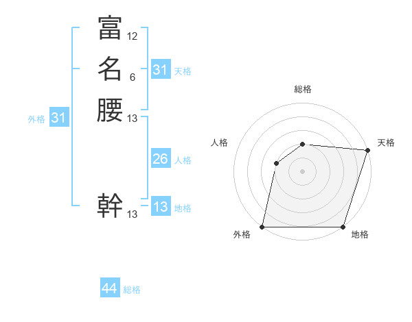 富名腰 幹さんの総格は44画の2点