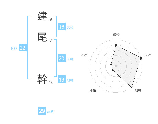 建尾 幹さんの総格は29画の4点!