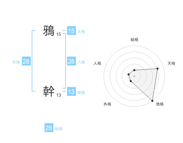 鴉 幹さんの外格は28画の1点!
