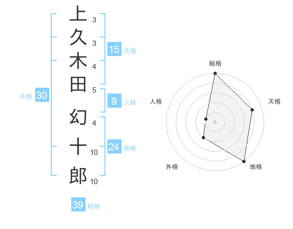 上久木田 幻十郎さんの総格は39画の5点!