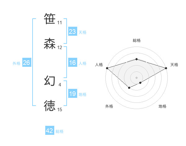 笹森 幻徳さんを姓名の画数から五運を鑑定