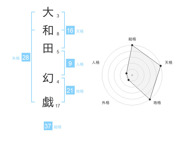 大和田 幻戯さんを姓名の画数から五運を鑑定